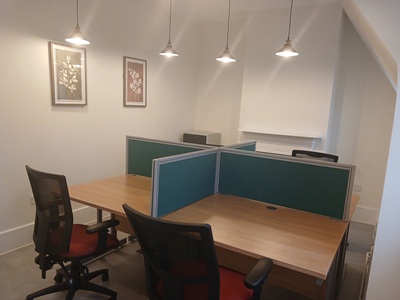 The hire fee includes fast Wi-Fi, printing facilities and lockers, and includes break-out space with free tea/coffee which can be used as a meeting room.